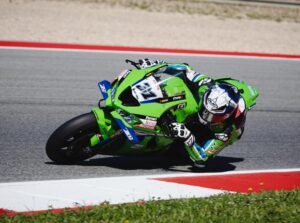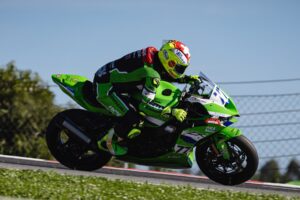 Having completed testing at the Cremona Circuit, the two Kawasaki WorldSSP riders, Spaniard Jeremy Alcoba and Swiss rider Dominique Aegerter, were back aboard their Ninja ZX-6R 636 machines for free practice, a session in which they worked to adapt the setup of their bike to the winding Portuguese track. Alcoba placed eleventh (1’44”755) and Aegerter twenty-fourth (1’45”713).