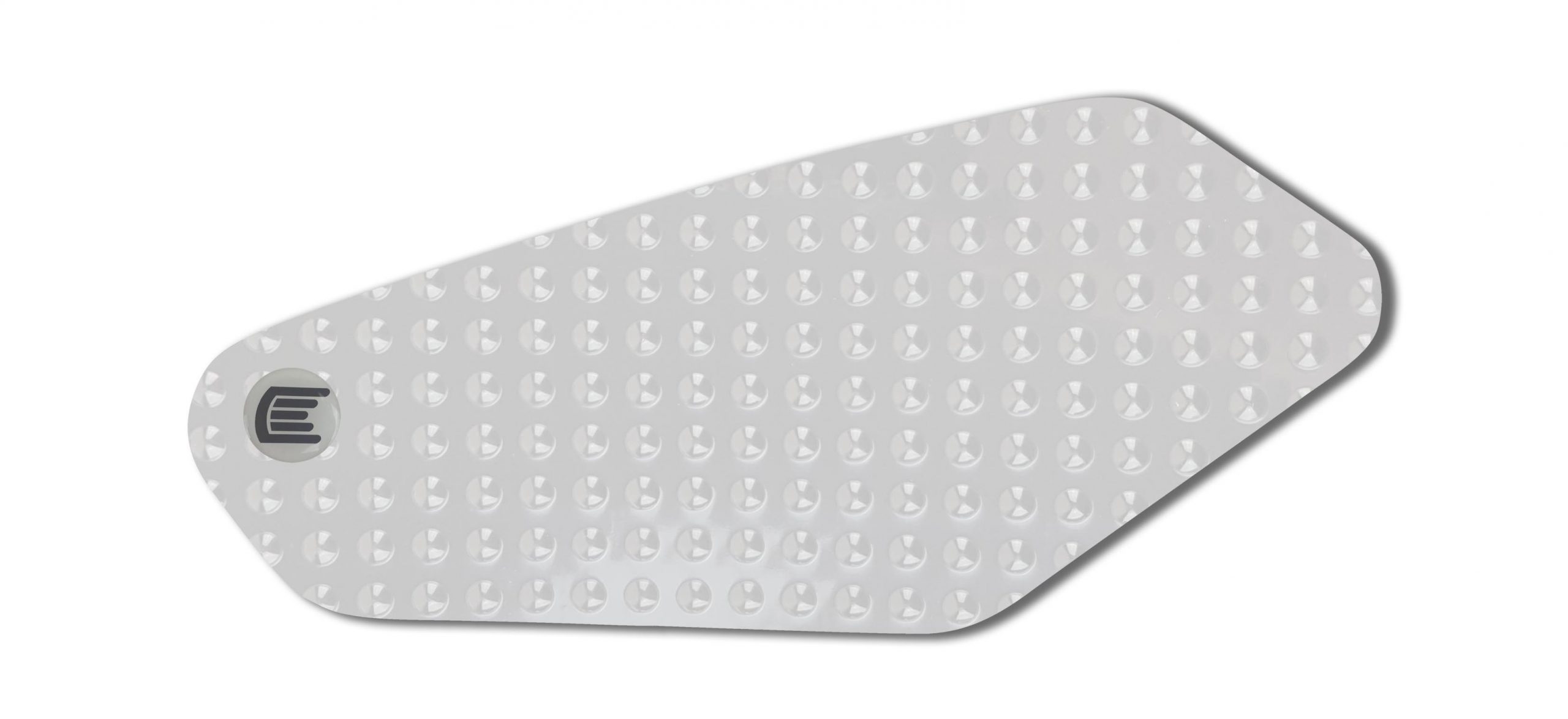 The ‘Evo’ series tank grip features pronounced hemispherical traction domes.  Ideal for riders who want that added level of confidence by being able to feel the grip through their leathers.  Available in Black and Clear.