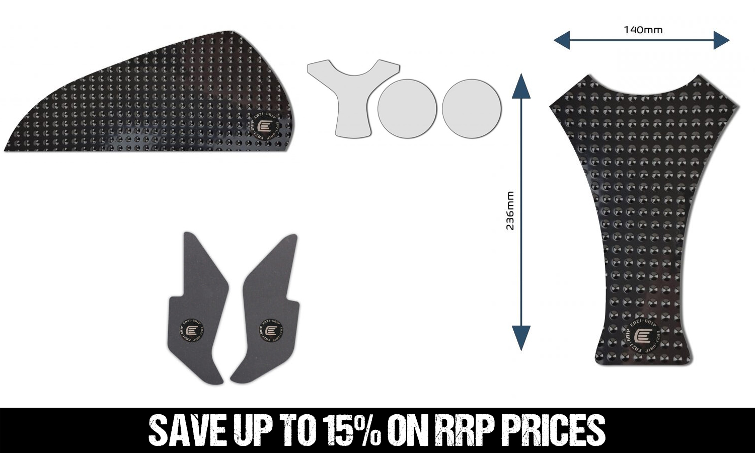 • Includes Scuff Guard Kit, Dashboard Protector, Tank Grips and a Centre Tank Pad