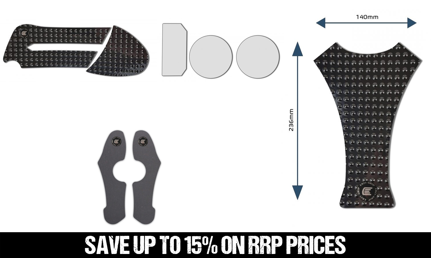 Please note Eazi-Grip™ tank grips come with a 25mm diameter Eazi-Grip™ logo badge that should be placed in the hole in the grip once applied.