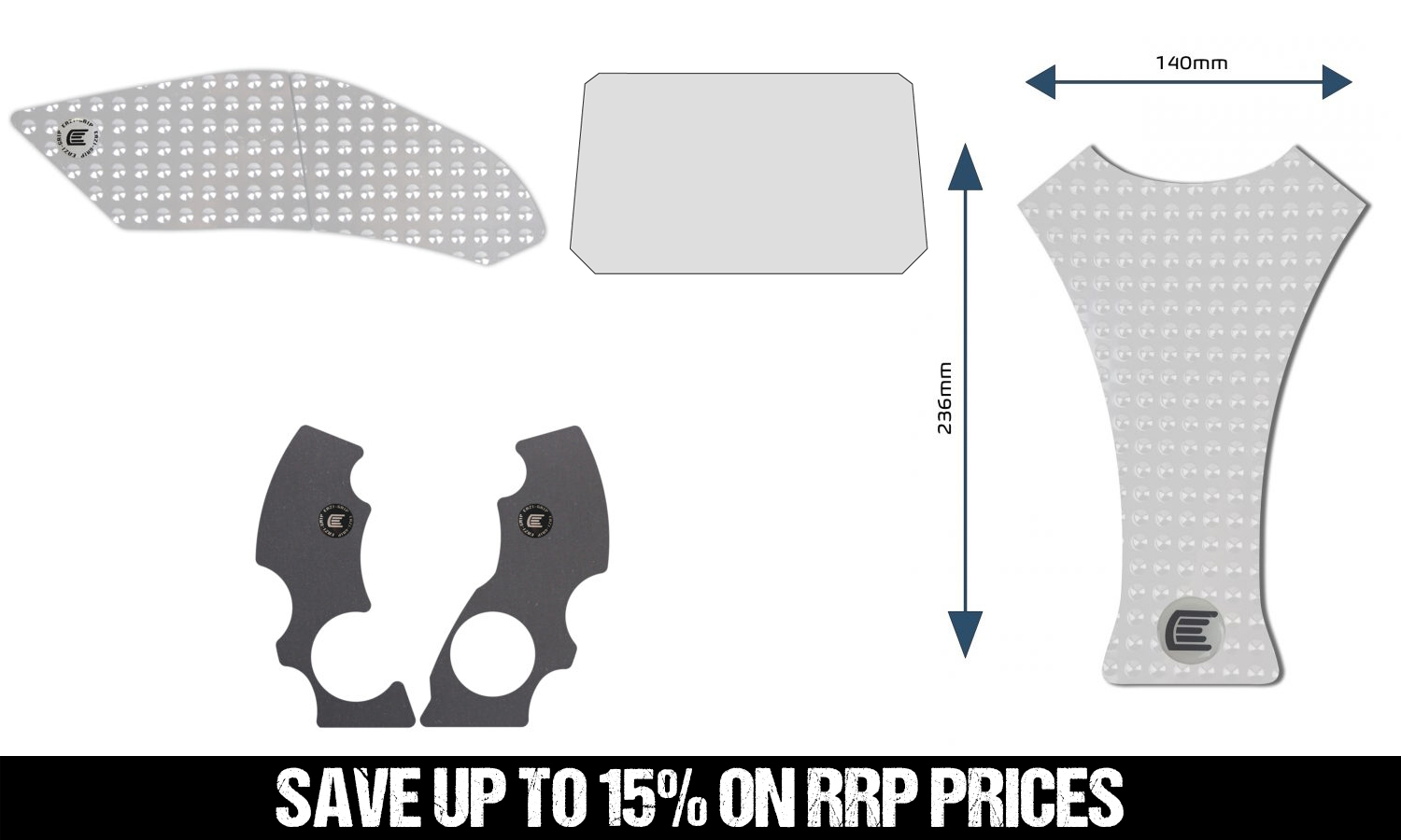 • Includes Scuff Guard Kit, Dashboard Protector, Tank Grips and a Centre Tank Pad