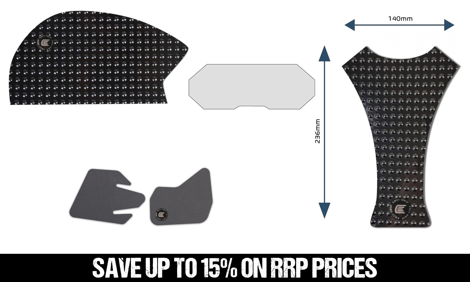 • Includes Scuff Guard Kit, Dashboard Protector, Tank Grips and a Centre Tank Pad