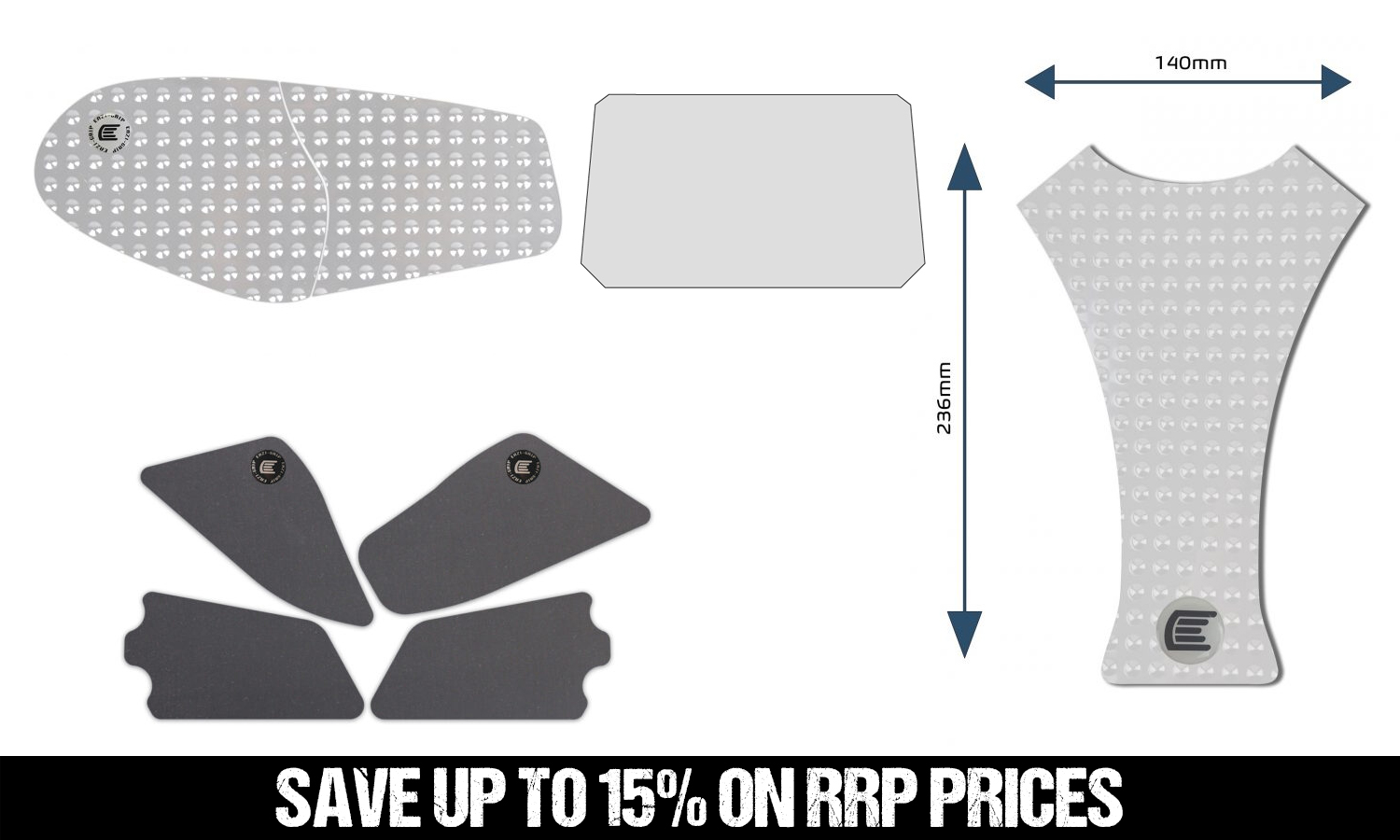 • Includes Scuff Guard Kit, Dashboard Protector, Tank Grips and a Centre Tank Pad